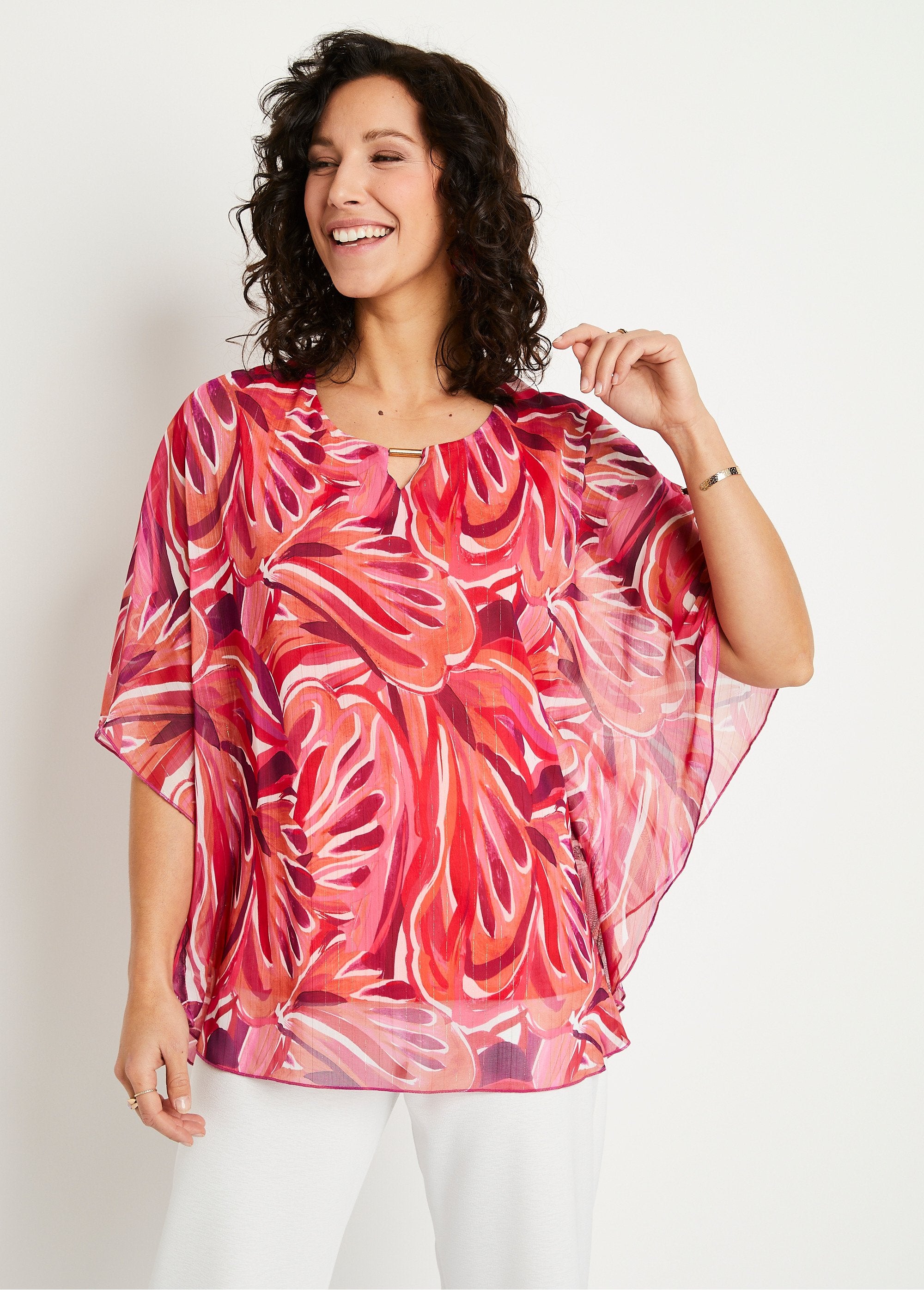 Loose-fitting_tunic_with_3/4-length_sleeves_Blue_and_coral_FA1_curvy Loose-fitting_tunic_with_3/4-length_sleeves_Blue_and_coral_DO1_curvy