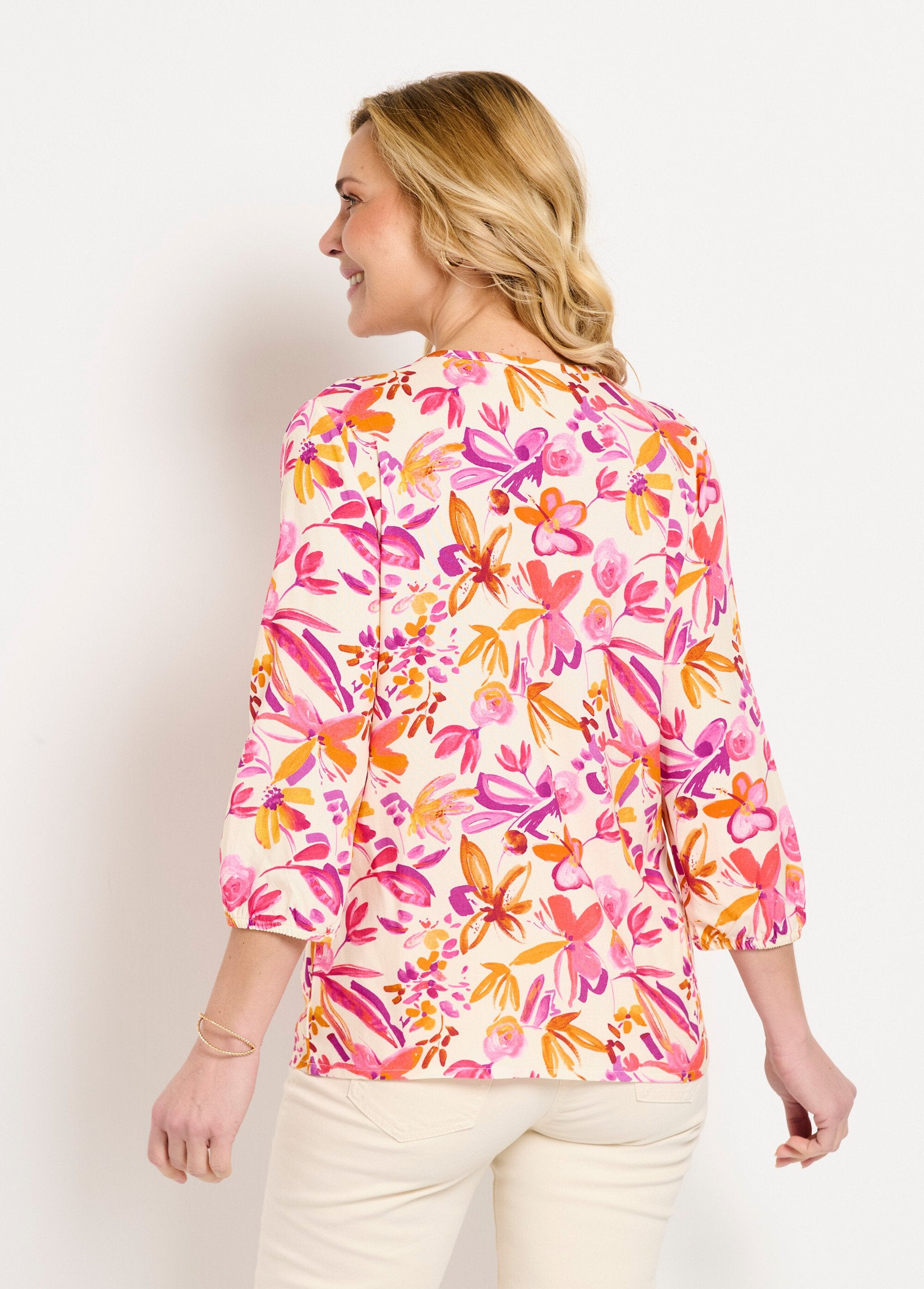 Long_loose_floral_tunic_with_3/4_sleeves_Orange_and_pink_FA1_slim Long_loose_floral_tunic_with_3/4_sleeves_Orange_and_pink_DO1_slim