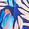 Short V-neck dress with draped effect and foliage print  Blue and orange